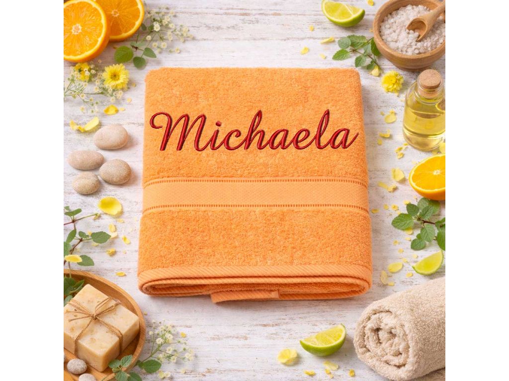 Vyšívaná osuška s menom : MichaelaMichaela oslavuje svoj sviatok 29. septembra. Miška vraj nepatrí v puberte medzi najpríťažlivejšie dievčatá, ale tak ako to býva v rozprávke o „škaredom kačiatku“, aj z nej vyrastie „krásny motýľ“. V dospelosti sa stáva veľkorysá a býva šarmantná, príjemná a úprimná. Potešte takúto milú osôbku niečím originálnym. Osuška s menom je krásnym darčekom, ktorý rozhodne rozveselí, pretože nedarujete iba jednorazový dar, ale nespočetne príjemných okamihov, darujete jemný dotyk osušky. Typickou farbou tohto mena je zelená, ale u nás máte možnosť pestrého výberu. Turecké vyšívané osušky ponúkame v 21 farbách a v 15 odtieňoch viskózových nití. Všetky osušky s menami sú vyrobené zo 100 % bavlny.