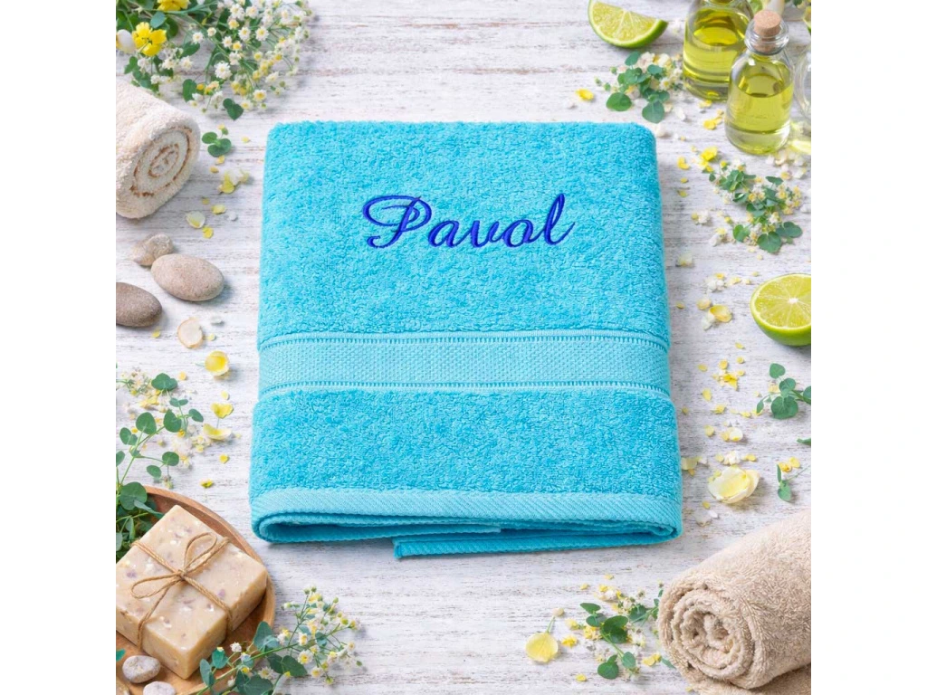 Táto osuška je vyrobená z kvalitnej 100% bavlny, ktorá je mäkká, savá a vhodná na každodenné použitie – doma, na dovolenke alebo vo fitku. Meno je vyšité odolnou viskózovou niťou v odtieni podľa vášho výberu. Na výber máte až 21 farieb uterákov a 15 odtieňov výšiviek.